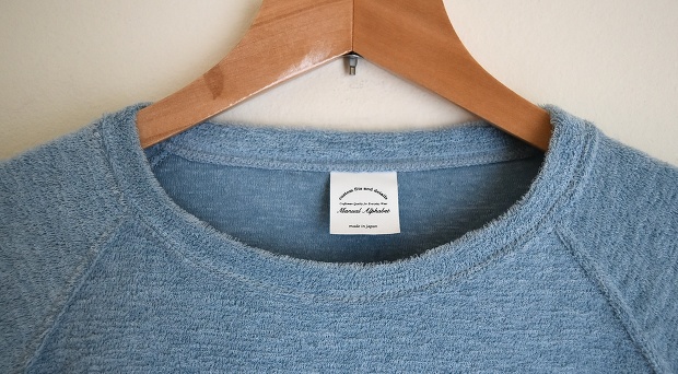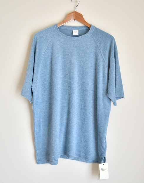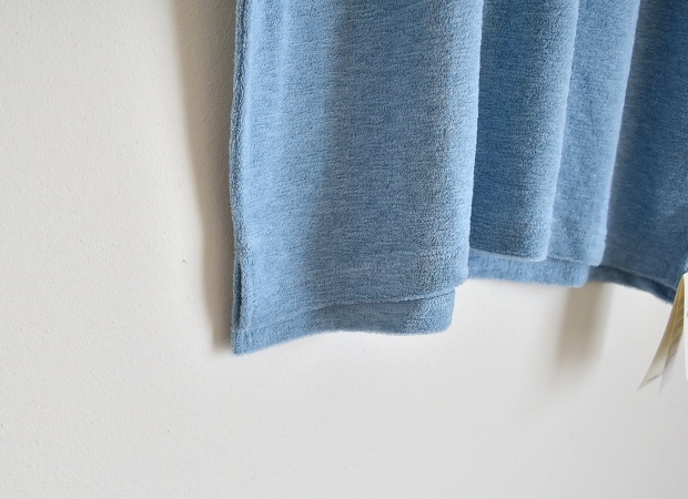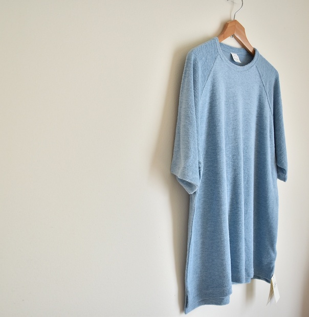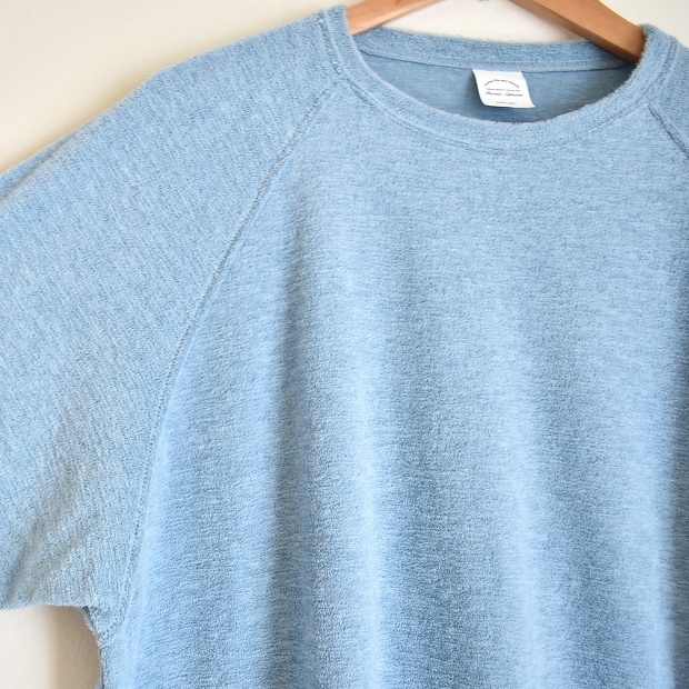 スラブ糸を使用したメランジパイルでループの入りかたにニュヤンスが有る特徴のシンプルなデザインです。ラグランショルダーを採用しラフな着心地とパイルと言う柔らかいイメージですが、ちょっとスポーティーさやストリート感が垣間見えます。